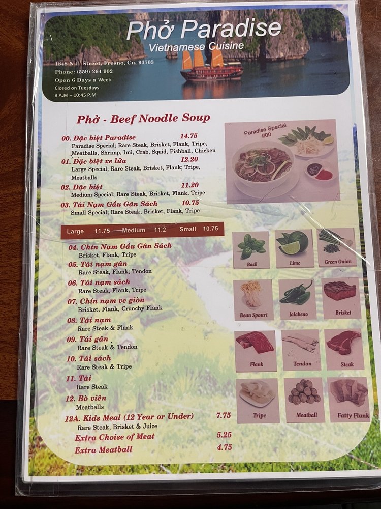 Paradise Restaurant, located in the heart of Fresno's "Pho District," is a delightful sanctuary for Vietnamese cuisine enthusiasts. Renowned for its generous servings and rich flavors, the menu features a variety of delectable dishes, each crafted with care. Start your culinary journey with their signature Insalata Paradiso or comforting Caesar Salad.