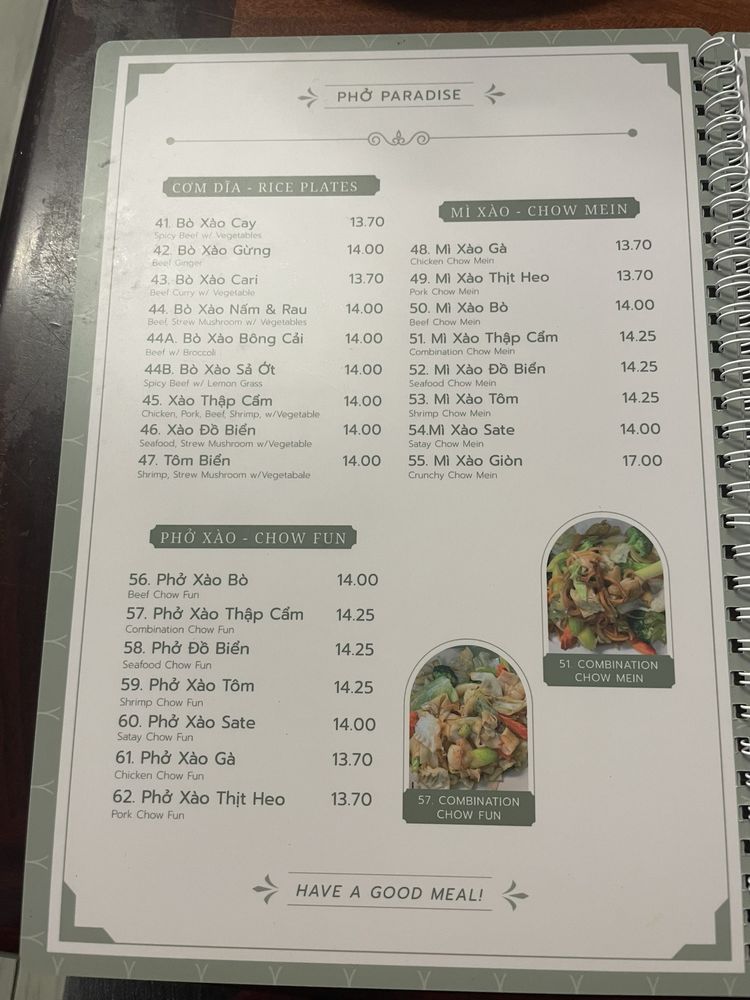The highlight, undoubtedly, is the warmly steaming bowl of Pho, praised by customers for its robust broth and plentiful toppings. Diners also rave about the seasoned Chow Fun and crispy Egg Rolls. Whether it’s a casual lunch or dinner, Paradise Restaurant caters to all with vegan options, takeout, and even outdoor seating.